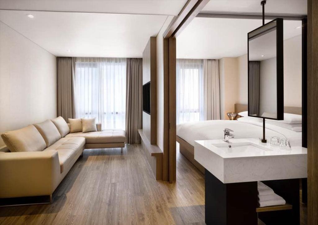 영등포역 바로 옆이라 번화가를 원하는 사람들에겐 최적의 위치이며 메리어트 브랜드답게 서비스나 깨끗한 객실은 기본이었던듯