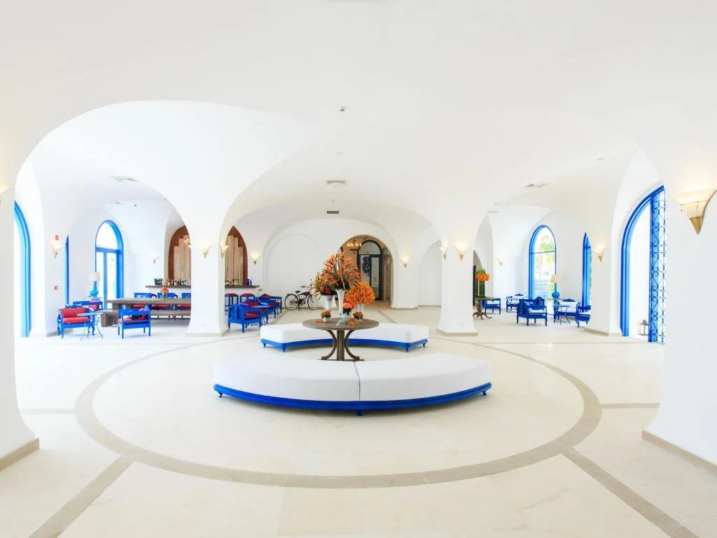 그리스 산토리니에 영감을 받아 시원한 화이트와 블루톤의 밝은 인테리어가 특징인 ‘라이즈마운트 리조트 다낭.