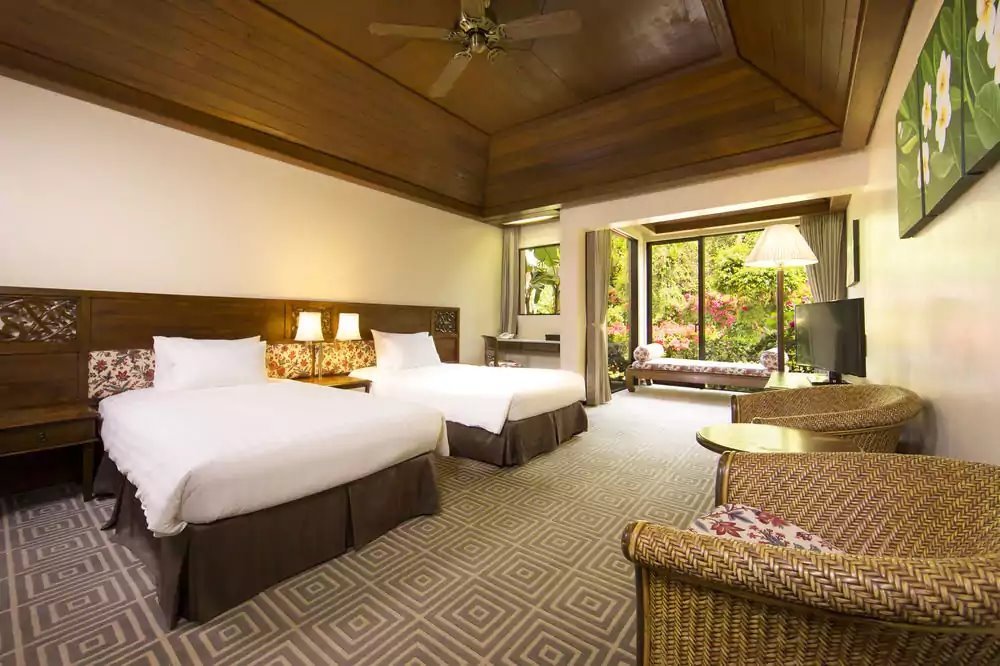 디럭스 패밀리 가든뷰 객실에서는 열대 정원 속에 묻혀