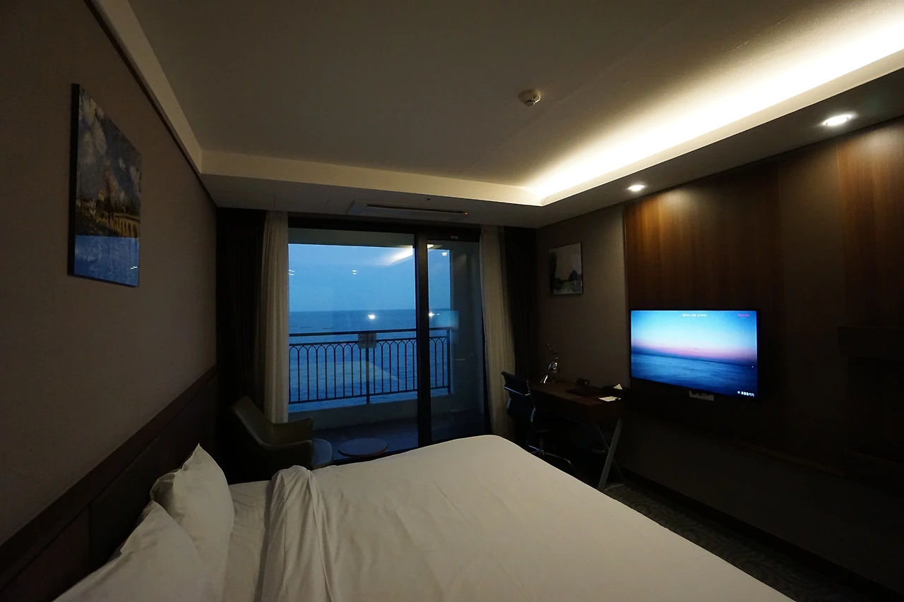 "바다 바로앞이라 전망이 최고였어요! 로비는 허접스럽고 주차장이 협소해 저 멀리 공터 주차장에 주차했지만 프론트 직원분들도 친절하셨고 체크인 순서가 되었을 때 빠르게 도움주셔서 좋았어요. 대포항에 걸어서 다녀올 수 있어서 먹을 거 걱정은 안 해도 되구요 호텔 바로 앞에 편의점도 있어요."