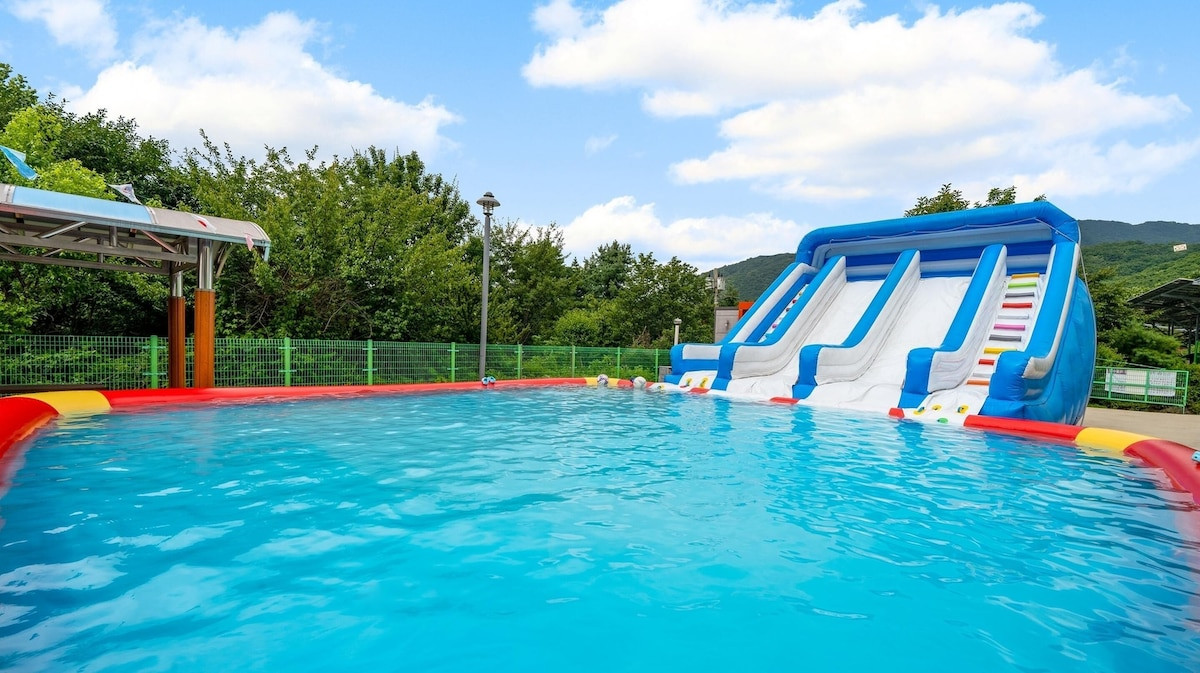 시야가 탁 트이는 숲속에 위치한 펜션이에요. 조용하게 힐링하기 좋은 곳으로, 수영장도 운영 중이라 아이들과 함께 마음 놓고 뛰어놀 수 있답니다.