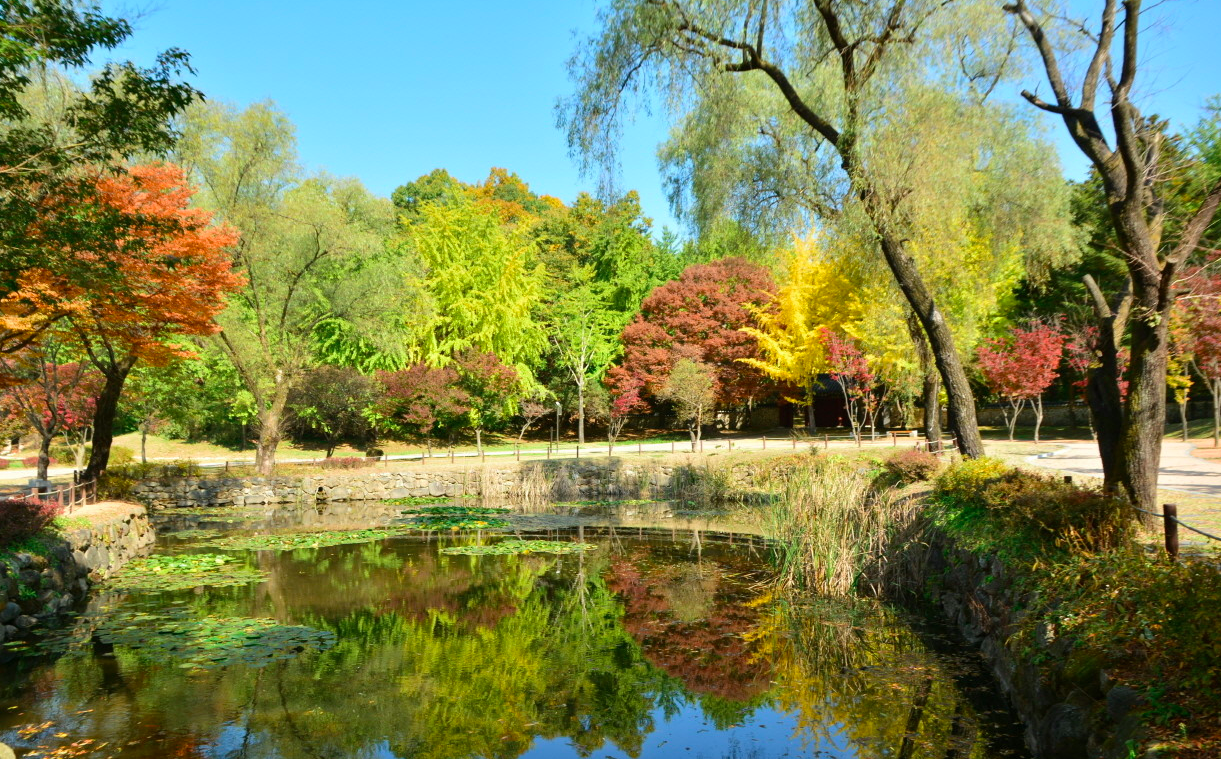 벽초지 문화 수목원은 아름다운 경치 덕분에 드라마 <태양의 후예>, <별에서 온 그대>, <끝에서 두 번째 사랑>등에 등장하기도 했습니다. 연꽃과 수련이 물 위에 띄워진 연화원 수련길, 습지원과 잔디 광장, 은행 나무가 가득한 버들길, 아름다운 소나무길의 아리솔원, 이국적인 유럽식 정원 등을 돌아보며 천천히 수목원의 정취를 느껴보세요.