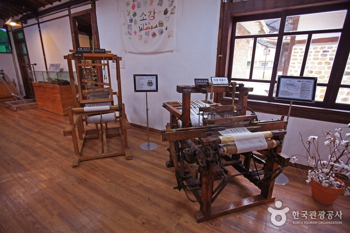 소창 체험관은 1938년에 건축된 한옥과 염색 공장이 있는 옛 평화 직물을 매입해서 리모델링한 곳인데요. 강화직물산업의 역사를 한눈에 볼 수 있으며 다양한 체험을 즐길 수 있다고 해요. 직조 시연관에서 소창이 짜이는 모습을 직접 보거나 문화관광해설사의 설명을 통해 직물 역사에 대해 좀 더 상세하게 들어볼 수도 있습니다.