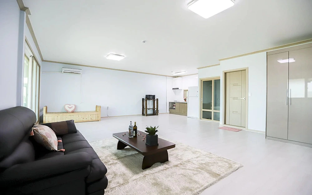펜션의 내부 중 룸은 일반적인 리조트나 호텔과 비슷하지만, 매우 넓은 거실을 가지고 있습니다. 많은 인원들이 함께 모여 시간을 보내기 좋을 것 같습니다. 펜션 내에 간이주방과 조리도구, 스토브와 전자레인지 등 요리를 위한 도구들이 구비되어 있어 펜션 내부에서 많은 시간을 보내기에 딱 입니다.
