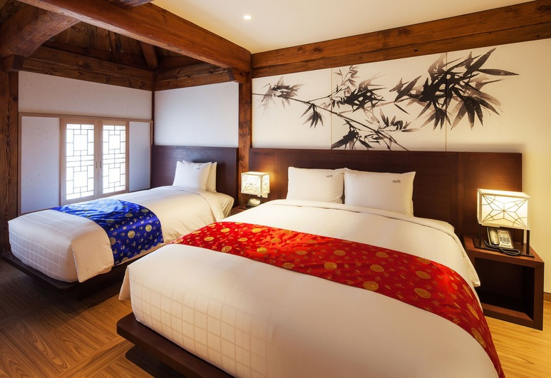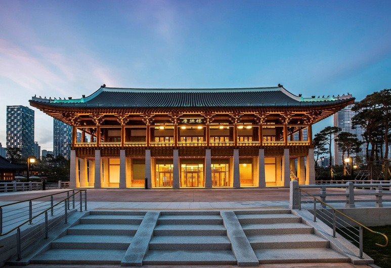 송도 컨벤시아 컨벤션 센터 근처에 위치한 이 호텔은 입구부터 한옥의 남다른 분위기와 위용이 느껴지는 곳인데요. 국내 최대 규모의 한옥 호텔이며 송도 신도시의 이국적인 야경을 배경을 고즈넉한 한옥에서 즐길 수 있다는 장점이 돋보이는 호텔이기도 합니다. 무료 초고속 인터넷과 무료 주차가 가능하며 암막 커튼이 있는 방음 객실을 이용할 수 있기에 조용한 휴식이 가능합니다.