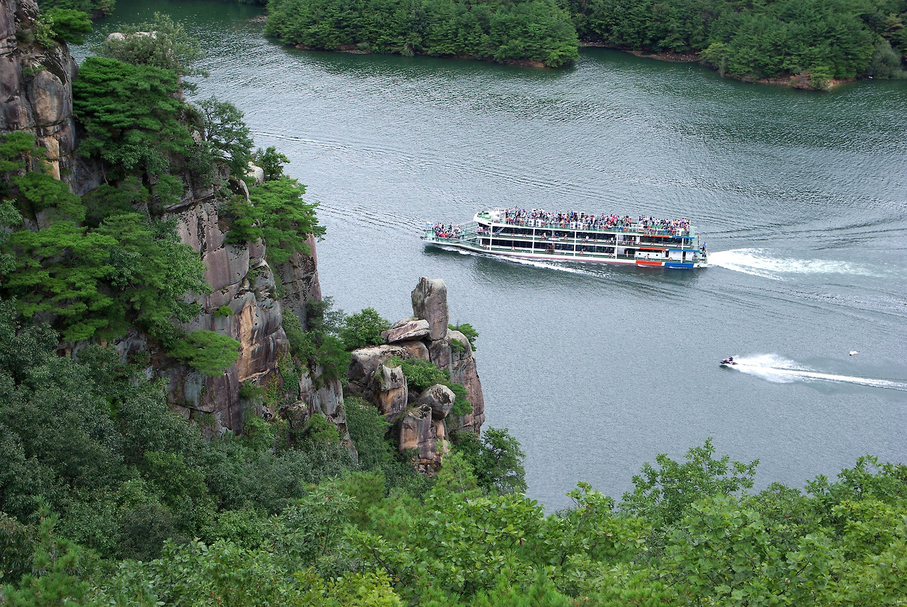 충주호는 충주의 가장 유명한 명소 중 한 곳으로 충주의 풍경마저 이 호수 덕분에 바뀌었다고 할 정도로 아름다움을 인정받았습니다. 충주 호반길과 충주호 앞 산길을 천천히 드라이브하면서 가면 차창 밖으로 보이는 풍경을 제대로 즐길 수 있습니다. 유람선을 타면서 경치를 물 위에서 즐겨보는 것도 좋은 방법입니다.
