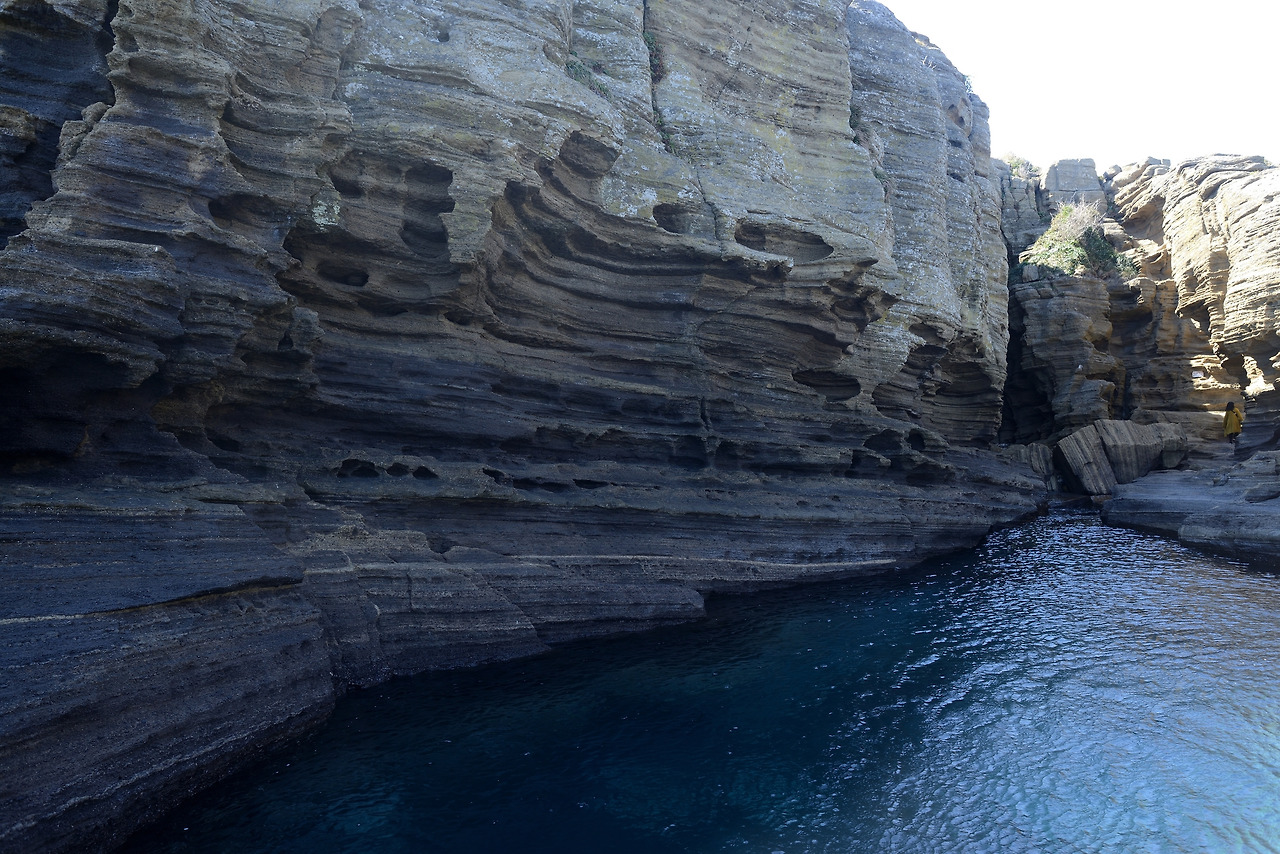 용머리는 제주도에서 가장 오래된 화산인데요. 산방산 해안에 있으며 바다로 들어가는 용의 머리를 닮은 용머리 해안은 천연기념물 제526호에 속해있습니다. 좁은 통로를 따라 바다로 내려가면 오랫동안 쌓여있는 사암층 암벽을 볼 수 있습니다. 해안 아래에 있는 기념비는 1653년 하멜이 탄 선박에 난파되어 표착했던 것을 기념하기 위해 세운 비석입니다.