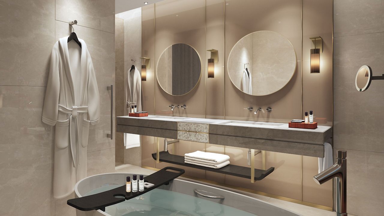 실내 수영장과 시즌별로 운영하는 야외 수영장에는 어린이 수영장이 함께 있고 카바나와 일광욕 의자, 파라솔 등이 마련되어 있습니다. 욕실에는 욕조와 레인폴 샤워기가 장착되어 있으며 75인치 TV에서 넷플릭스와 디지털 채널을 즐겨볼 수 있어요. 카운터에서 무료 신문과 컨시어지 서비스를 문의하는 것도 가능합니다.