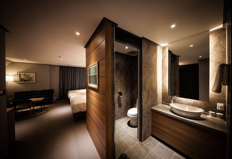객실은 모두 서로 다른 스타일의 인테리어를 하고 있으며 베개 종류의 옵션을 선택할 수 있고 메모리폼 매트리스를 장착하고 있어요. 또한 객실 내에 책상과 컴퓨터가 따로 있기 때문에 여행 코스를 추가로 검색하거나 급한 용무가 생긴 사람들이 이용하기에 좋습니다. 1만 원의 추가 요금으로 얼리 체크인이나 레이트 체크아웃도 가능합니다.