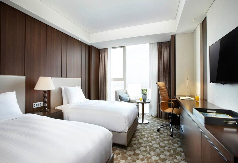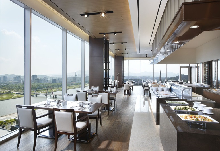 객실은 브라운 톤의 가구와 커튼을 활용해서 안정적이면서도 편안한 느낌으로 인테리어 해두었습니다. 선택에 따라 시티뷰 또는 리버뷰를 즐길 수 있습니다. 각각 가구를 다른 형태로 비치해두었으며 전용 욕실에는 레인폴 샤워기와 욕조가 따로 있습니다. 매일 성인은 25000원, 어린이는 13600원의 요금으로 아침식사를 즐길 수 있으며 호텔 내부에 피트니스 시설 또한 마련되어 있어 운동을 즐기는 사람들은 꾸준히 패턴을 이어나갈 수 있어요.