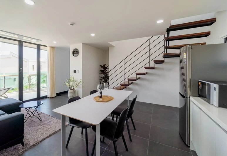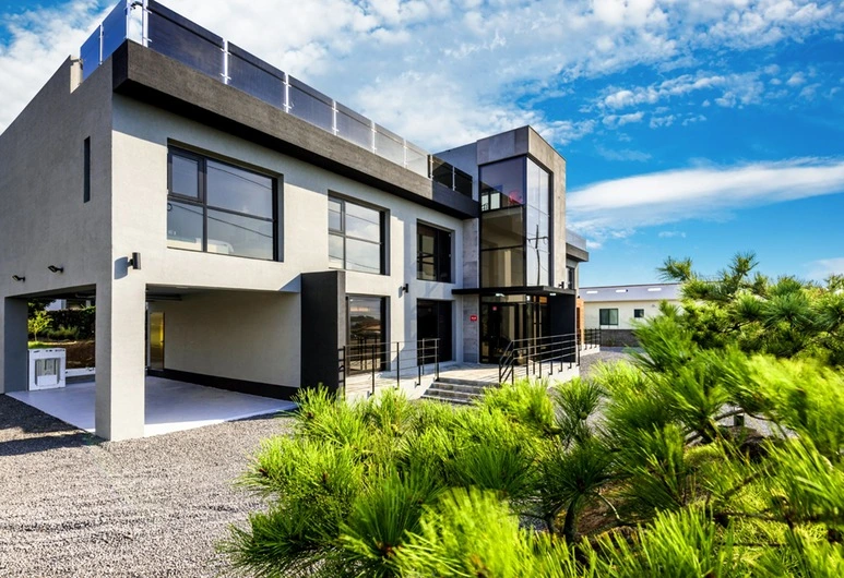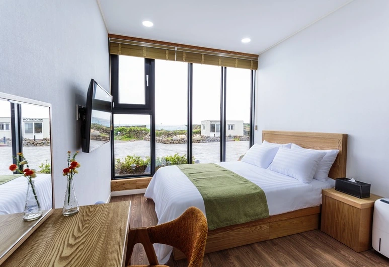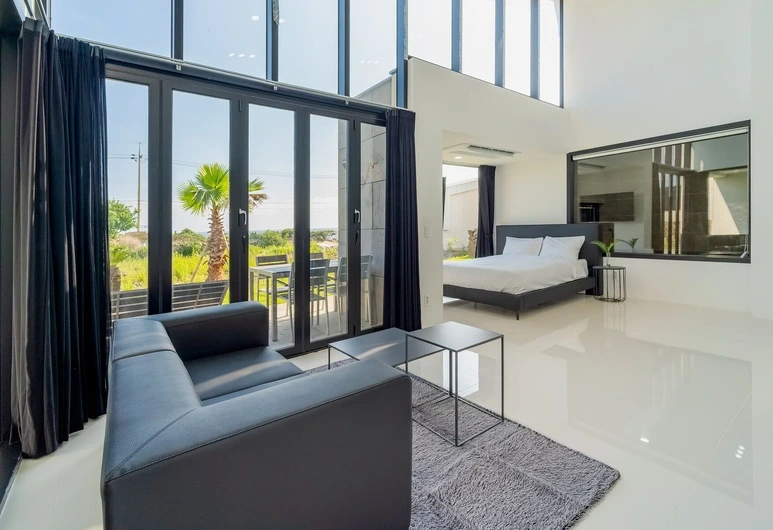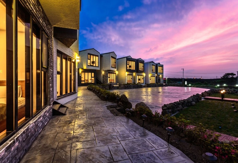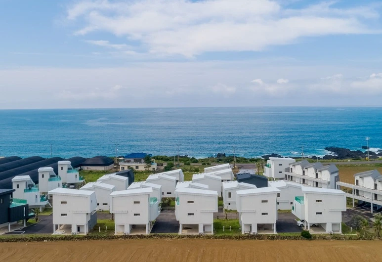 이 숙소는 초콜릿 박물관과 산방산 탄산 온천, 모슬포 항구를 차로 이동하기에 좋은 위치에 있으며 25개의 아파트 형태 객실을 보유 중입니다. 바다를 마주하고 있는 화이트 객실 건물이 옹기종기 모여있어 멀리서 봐도 아름다운 광경을 자아내고 있는데요. 돌담으로 둘러쌓여있어 바람이 세게 불어오는 날에도 안정감을 주는 곳입니다.