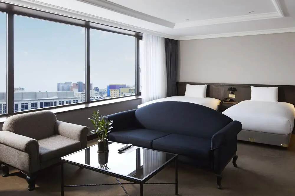 침대가 있는 객실과 한실 침구가 있는 온돌형 객실이 마련되어 있으며 매일 별도의 요금으로 한식 아침 식사를 주문할 수 있습니다. 호텔 내에는 2개의 레스토랑과 2개의 카페가 마련되어 있고 시즌별로 운영하는 야외 수영장에는 카바나와 일광욕 의자, 파라솔이 설치되어 있으며 풀사이드 바 또한 함께 있습니다. 객실 내에는 커피/티 메이커가 있고 암막 커튼과 고급 침구가 배치되어 있습니다.