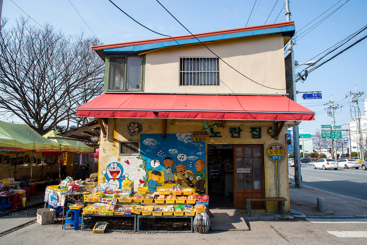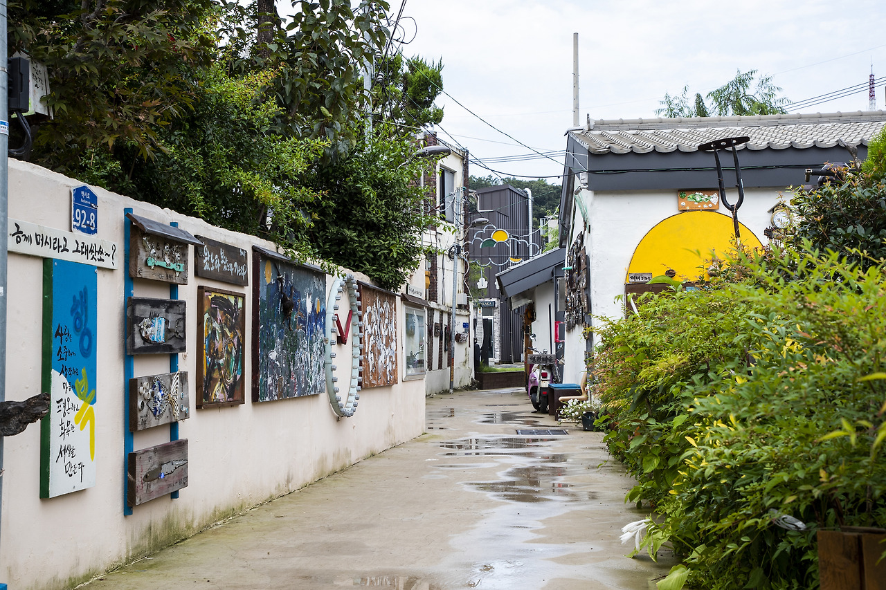 페이퍼 코리아 공장과 군산역을 연결하는 2.5km 철로 주변의 마을을 경암동 철길마을이라고 하는데요. 1944년 무렵, 개설된 철도 주변에 사람들이 모여 살기 시작하면서 동네가 만들어졌는데요. 푸른색, 자주색, 노란색 등 아기자기한 느낌의 파스텔 톤으로 칠해진 문과 벽을 보면서 사진을 찍거나 산책을 해도 좋습니다.