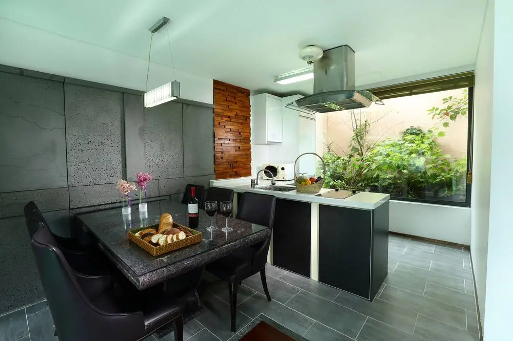 프런트 데스크가 따로 없기 때문에 도착 3일 전에 연락을 해두어야 하며 밤 10시 이후 도착 예정이라면 사전 고지가 필요합니다. 객실 내에는 냉장고와 전자레인지, 스토브 , 조리 도구가 비치되어 있는 간이 주방이 함께 있으며 욕실에는 분사식 욕조가 따로 있어 반신욕을 즐기기에 좋습니다.