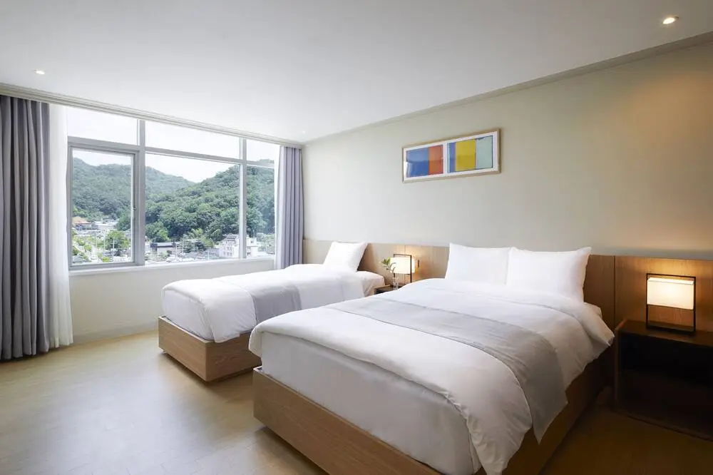 “킹베드지만 중학생 아들에게 간이침대 추가해주었어요 공간이 좀 비좁긴했지만 넉넉히 잘 수 있어서 괜찮았습니다 청결과 서비스는 좋았습니다 단지 매트리스에 먼지가 있어 호흡기에 좀 안 좋은거 제외하고 만족합니다”