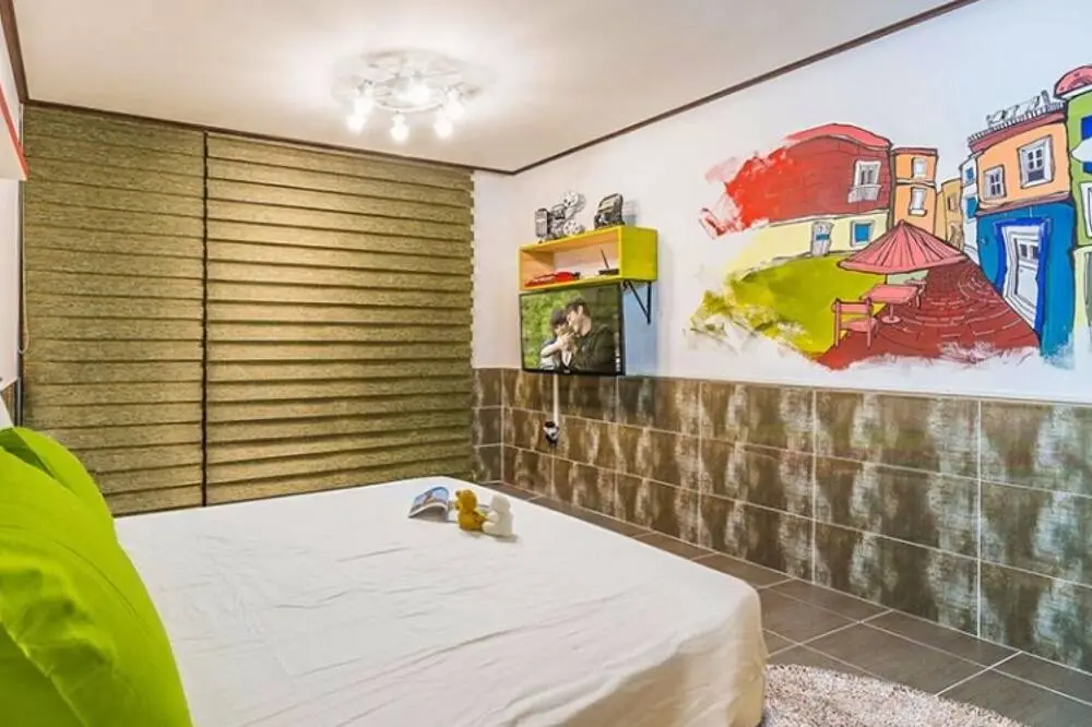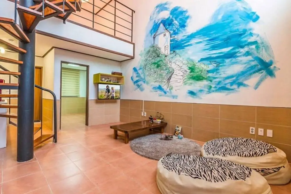 1층은 셀프 스튜디오, 2층은 카페, 3층은 객실로 사용 중이며 심학산과 한강 사이에 위치하고 있는 데다가 높은 지대에 있어서 전망이 굉장히 좋습니다. 게임기, 노래방 기기가 있어 낮 시간에 여행을 즐기고 돌아와서 엔터테인먼트를 즐기면서 시간을 보내기에도 꽤나 좋은 환경입니다. 체크인 시작 시간은 오후 4시, 체크아웃은 오전 11시까지 하고 있으며 셀프로 무료 주차를 할 수 있습니다.