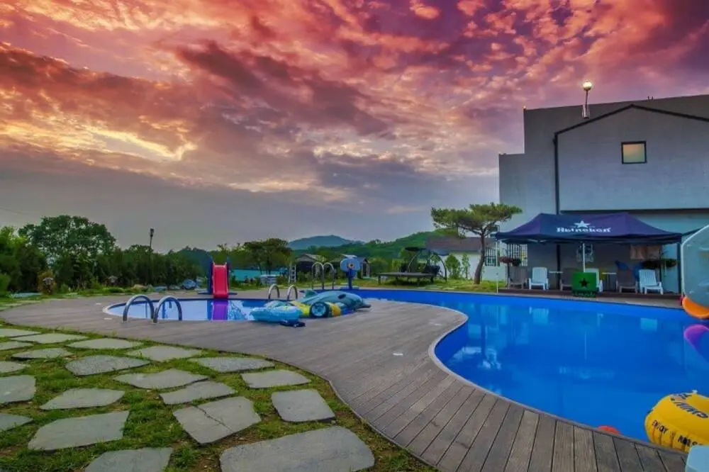 파평면 율곡리에 있는 펜션으로, 자연의 매력을 즐기며 바비큐 파티를 할 수 있는 곳입니다. 율곡 탐방로가 근처에 있어서 아침 산책하기에 좋고, 저녁에는 노을이 지면서 경치가 굉장히 좋다고 해요. 6개의 객실을 운영하고 있으며 야외 수영장과 바비큐 그릴, 커피숍이 갖춰져 있습니다. 무료 와이파이 사용과 무료 주차가 가능해요.