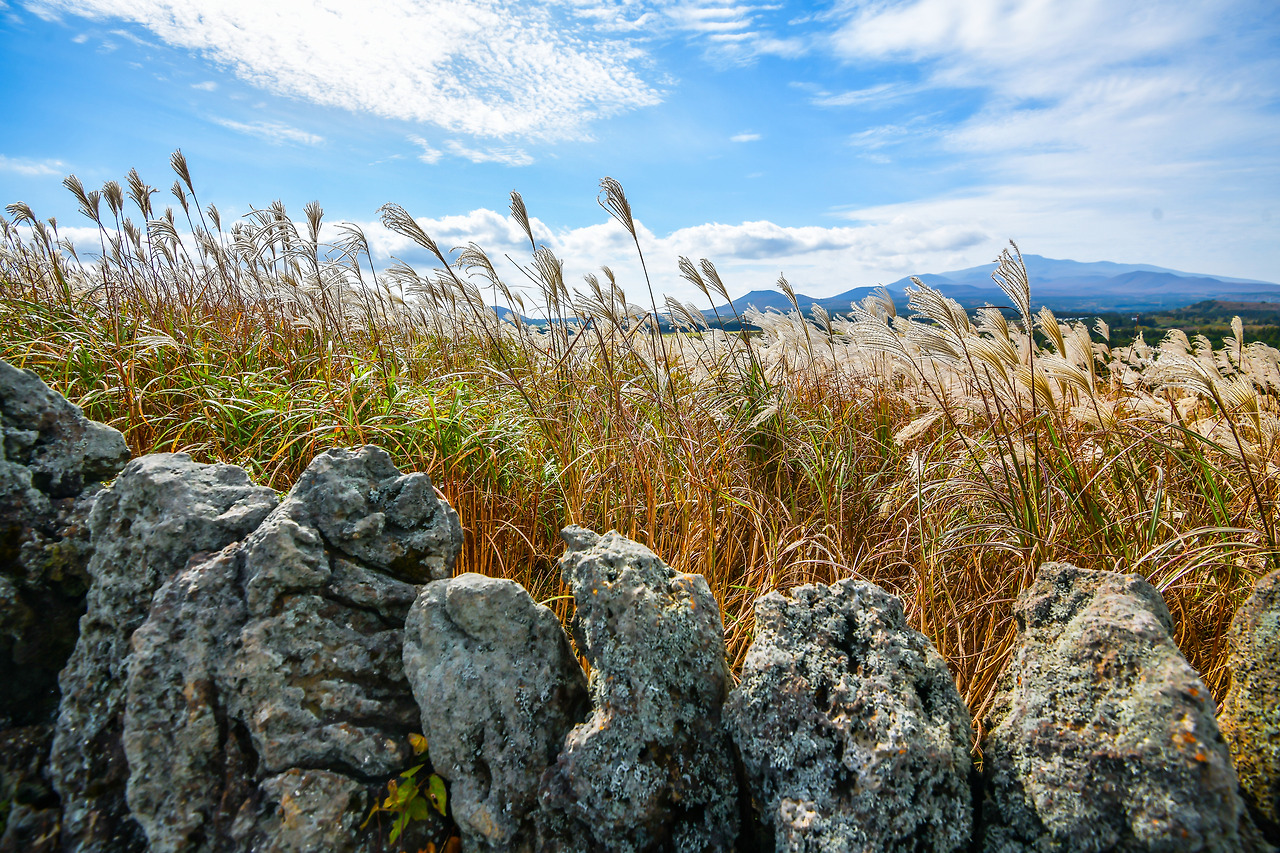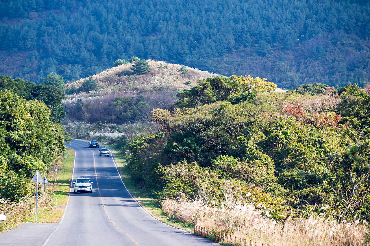 제주의 동부 중산간 도로 중 하나인 금백조로는 드라이브를 하기에 좋은 코스 중 하나로 소문이 자자합니다. 특히나 가을에 가면 억새가 은빛 물결을 이루면서 더욱 아름다운 풍경을 연출하는데요. 눈 내리는 겨울이나 나무가 앙상해지는 시기에 가도 충분히 매력적인 코스이니 차를 렌트한다면 꼭 한 번 들러보실 만한 코스입니다. 오름들 사이에서 돌아가는 풍력발전기도 꽤 신기한 볼거리입니다.