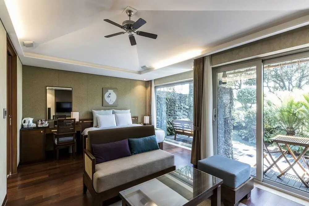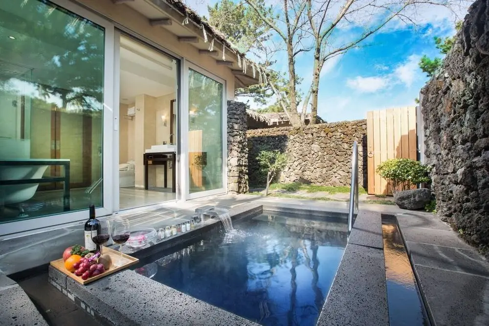 전 객실이 단독 독채형으로 구성된 전통 호텔로, 제주 유일의 황모 장인이 정성으로 만든 황모 지붕, 현무암으로 쌓아 올린 돌담, 푸른 바다가 펼쳐지는 드넓은 가든이 있습니다. 제주 공항에서 차로 35분 정도가 소요되며 중문 색달해변이나 제주 국제평화센터, 퍼시픽 랜드, 주상절리 절벽을 도보로 이동하는 것이 가능합니다.