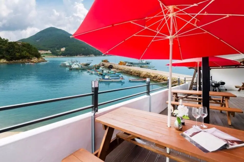 바다가 보이는 야외 테라스에 앉으면 차 한 잔의 여유와 시원한 바람이 가져다주는 청량함을 즐기면서 바베큐 파티를 즐길 수 있어요. 숯불 바베큐는 1세트에 2만 원의 추가 요금을 지불해야 합니다. 도보로 5분 거리에는 낚시하는 지점이 있는데, 펜션에서 낚싯배 연결을 도와주고 있으니 원하는 사람은 신청해서 이용할 수 있어요.