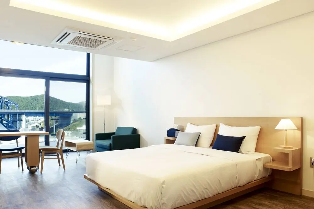 체크인 시간은 오후 3시부터 새벽 5시까지, 체크아웃은 오전 11시까지 진행하고 있습니다. 공용 구역과 객실 내에서 무료 와이파이를 사용할 수 있오 무료 시설 내 셀프 주차가 가능합니다. 위치가 좋은 편이라 통영 대교를 전망으로 눈에 담을 수 있고 객실에는 온도 조절기와 냉장고, 평면 텔레비전이 비치되어 있습니다.