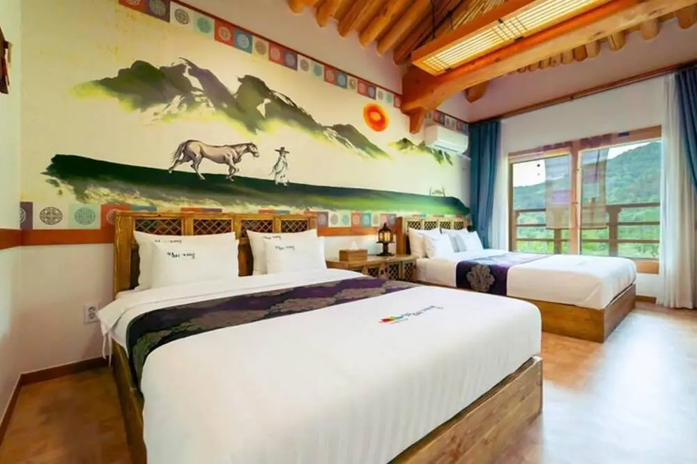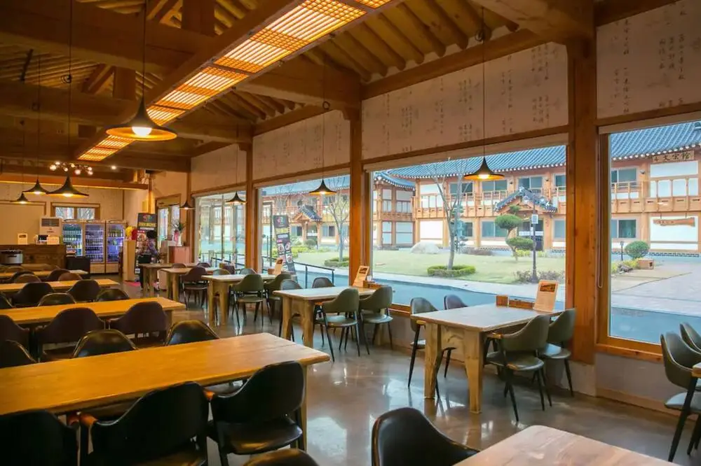 별도의 요금으로 아침 식사는 뷔페식으로 이용할 수 있으며 2개의 레스토랑과 카페를 보유하고 있어요. 가장 기본형 객실은 정 1품은 더블 침대 2개와 리빙룸 1, 욕실 1, 화장실 1로 구성되어 있으며 최대 4명까지 투숙 가능합니다. 조금 더 넓은 한옥 주택을 체험하고 싶다면 정 2품에서 높은 천정과 서까래로 구성된 한옥 고유의 멋스러움을 경험해보세요.