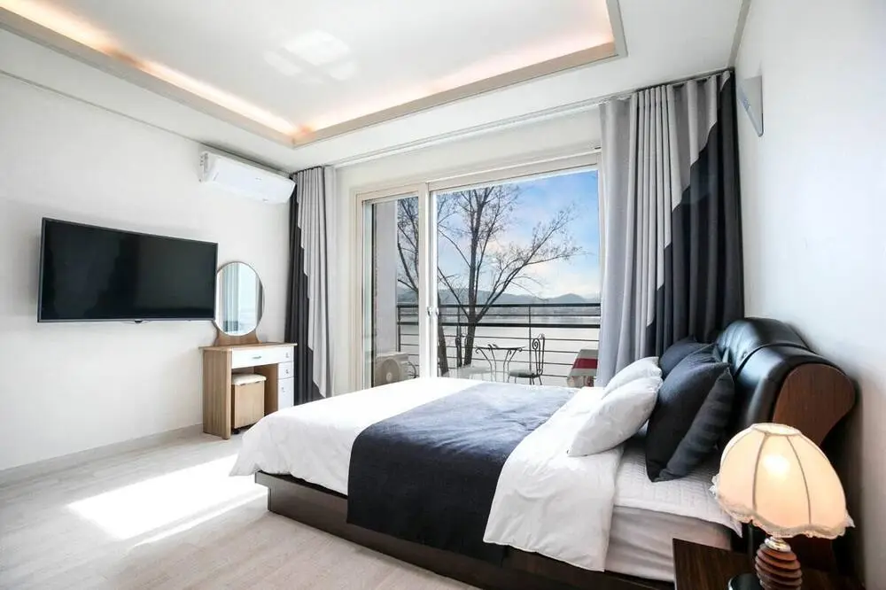 객실 내에서 강 전망을 즐길 수 있는 이 펜션은 가성비가 좋으면서 편안하게 지낼 수 있는 숙소입니다. 청평호에서 도보로 1분, 자라섬 오토 캠핑장이나 제이드가든 수목원에서 도보 30분 이내 거리에 있는 곳이며 객실은 5개만 운영되어 조금 조용한 휴식이 가능합니다. 체크인은 오후 3시부터 6시까지, 체크아웃은 오전 11시까지 하고 있어요.