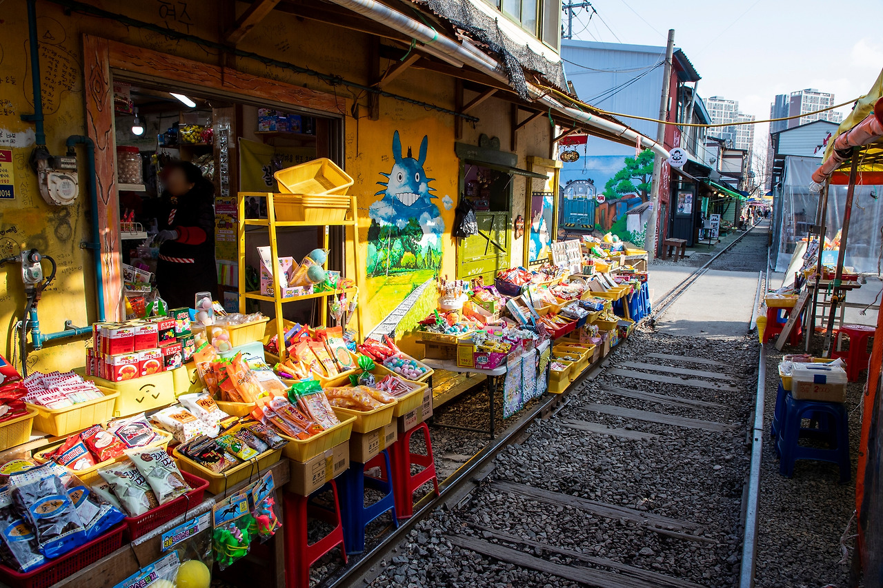 이 마을은 페이퍼 코리아 공장과 군산역을 연결하는 철로 주변의 마을을 광범위하게 지칭하게 된 곳입니다. 군산은 일제 강점기에 개설된 곳이 많은 편이에요. 이 역시 일제 강점기 시기에 개설된 철도 주변에 사람들이 모여 살면서 생긴 동네입니다. 지금은 철길 주변을 빈티지한 분위기의 테마 거리로 바꾸었습니다. 주변에는 유독 ‘옛날’을 붙인 상호의 상점이 많아서 보는 즐거움이 남다릅니다.