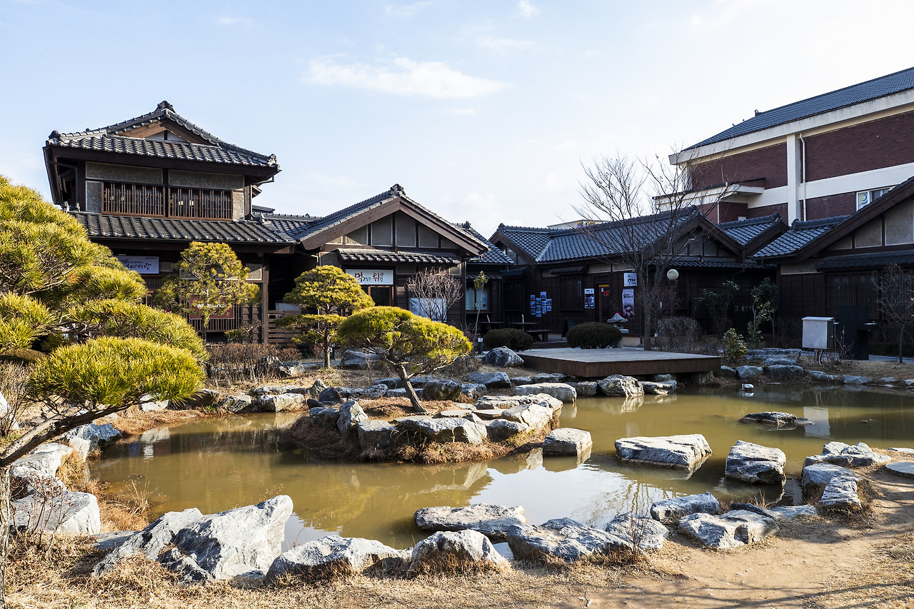 고우당은 옛 친구의 집이라는 뜻인데요. 군산시에서 조성한 근대역사체험지구의 숙박체험 시설입니다. 일본식 가옥인 다다미방의 형태를 띠고 있지만 현대식의 편리함도 갖추고 있어 안락하게 이용 가능합니다. 단지 중앙에는 일본식 전통 가옥이 작은 정원을 품고 있는 것처럼 연못을 중심으로 소나무가 심어져 있어 더욱 안락한 기운이 감돕니다. 고즈넉한 카페나 일본식 돈까스와 우동을 판매하는 식당도 함께 있어 편리하게 이용 가능합니다.