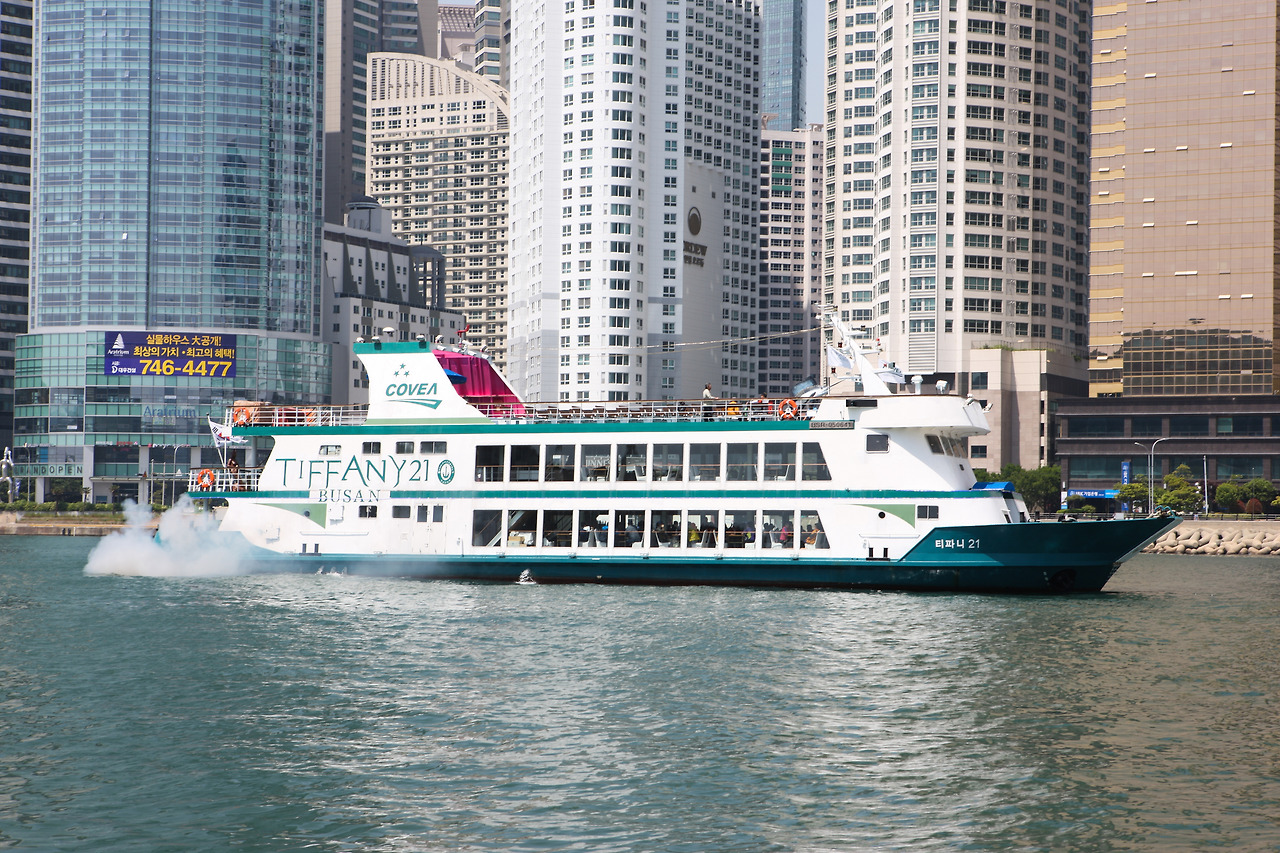 부산 티파니 21 크루즈 유람선은 부산을 대표하는 파티 컨벤션 크루즈로, 식사까지 함께 할 수 있는 유람선입니다. 주간에는 오륙도와 이기대의 절경을 볼 수 있고 야간이 되면 부산 밤바다가 아름다운 해운대와 광안대교의 야경을 즐길 수 있습니다. 오륙도 해상관광은 70분, 5월부터 10월까지 하고 있는 광안대교 야경관광은 60분 동안 운영됩니다.