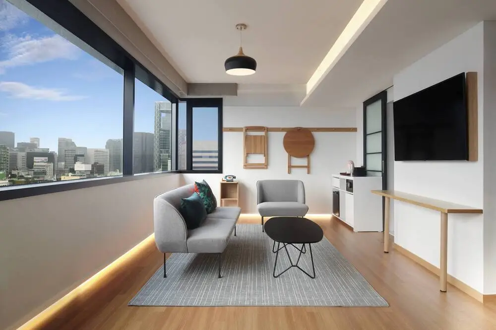 북촌 한옥마을과 경복궁 근처에 있는 이 호텔은 금연식 아파트 먼트 스타일의 호텔입니다. 주중에 하우스 키핑 서비스를 하고 있으며 실내 수영장을 갖추고 있어. 간이침대를 추가로 설치하려면 추가 비용을 지불해야 하고, 조리 도구와 전자레인지, 냉장고를 갖춘 주방이 마련되어 있어서 취식을 하기에 편리합니다.