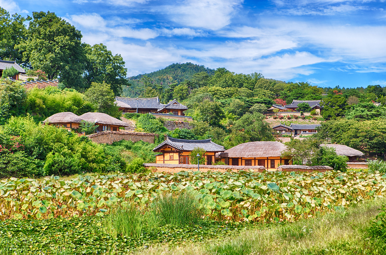 양동마을은 유네스코 세계문화유산이자 중요 민속 자료로 지정된 유서 깊은 한옥 마을입니다. 경주 손씨와 여강 이씨 종가가 한 마을에 살면서 전통을 여전히 지켜오고 있다고 해요.