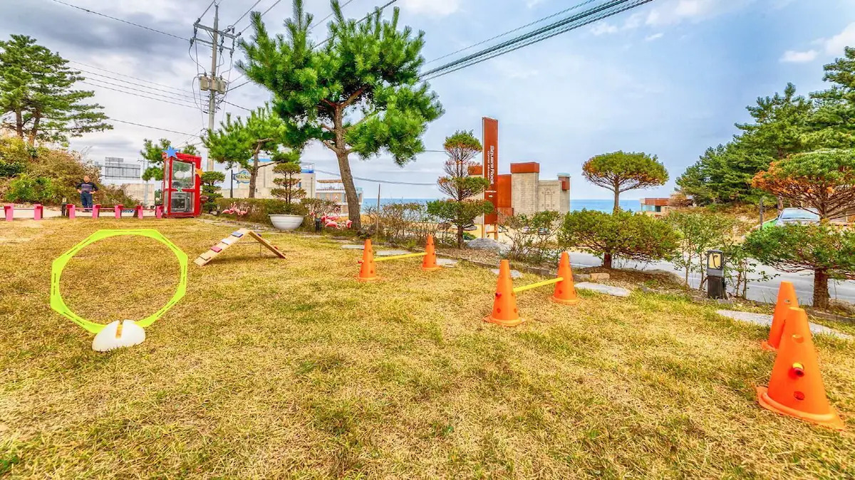 반려동물과 함께 투숙할 수 있다는 장점 덕분에 반려견과 이곳을 찾는 사람들도 많아요. 펜션 앞에는 반려견들이 즐길 수 있는 놀이터도 마련되어 있답니다.