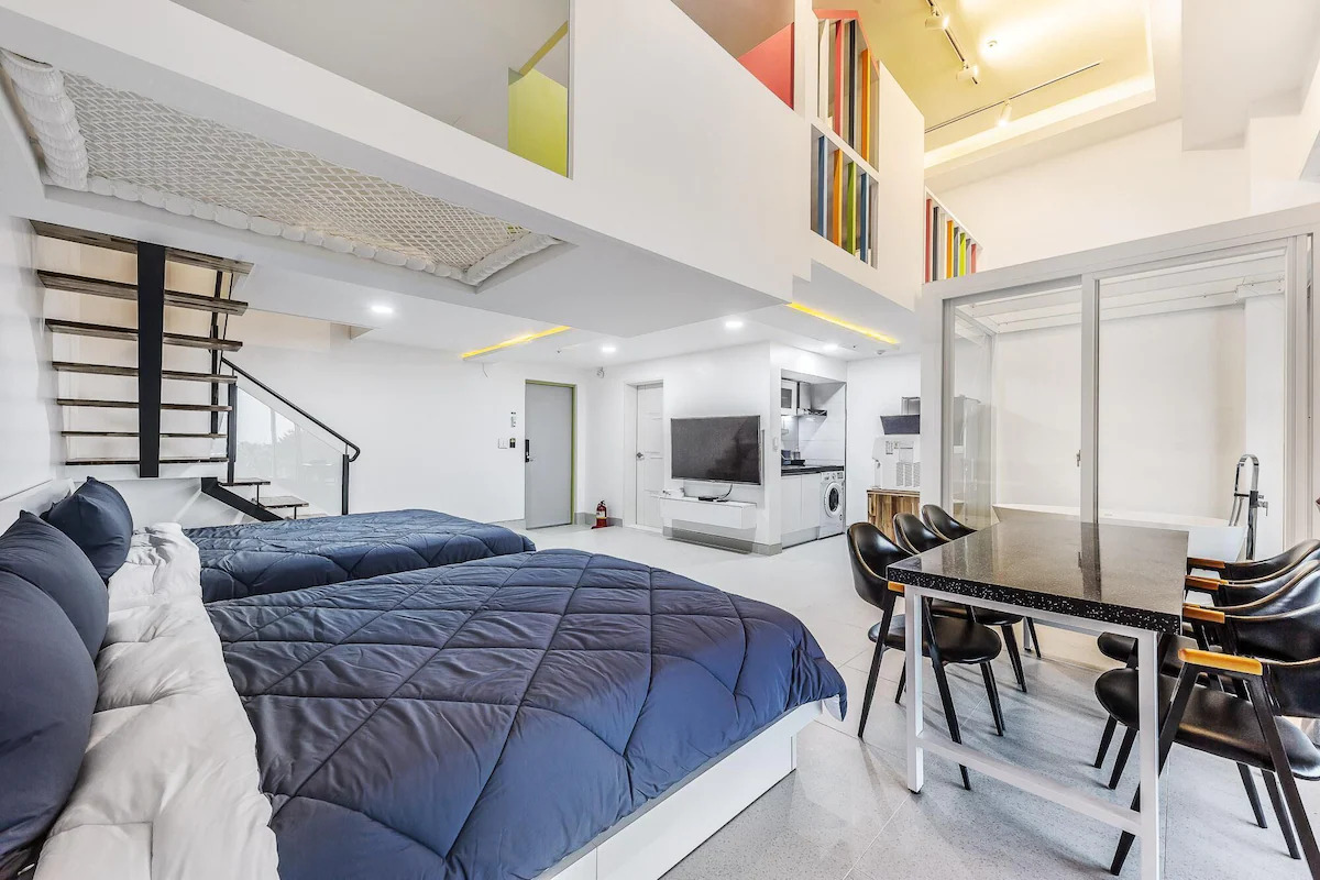복층 구조의 모든 객실에는 냉장고와 조리 도구를 갖춘 간이 주방이 마련되어 있습니다. 널찍한 야외 수영장이 외부에 있는 것은 물론, 객실마다 개별 수영장이 있어 사계절 내내 물놀이를 즐길 수 있어요. 숙소 체크인은 오후 3시부터 6시까지, 체크아웃은 오전 11시까지 진행하고 있습니다.