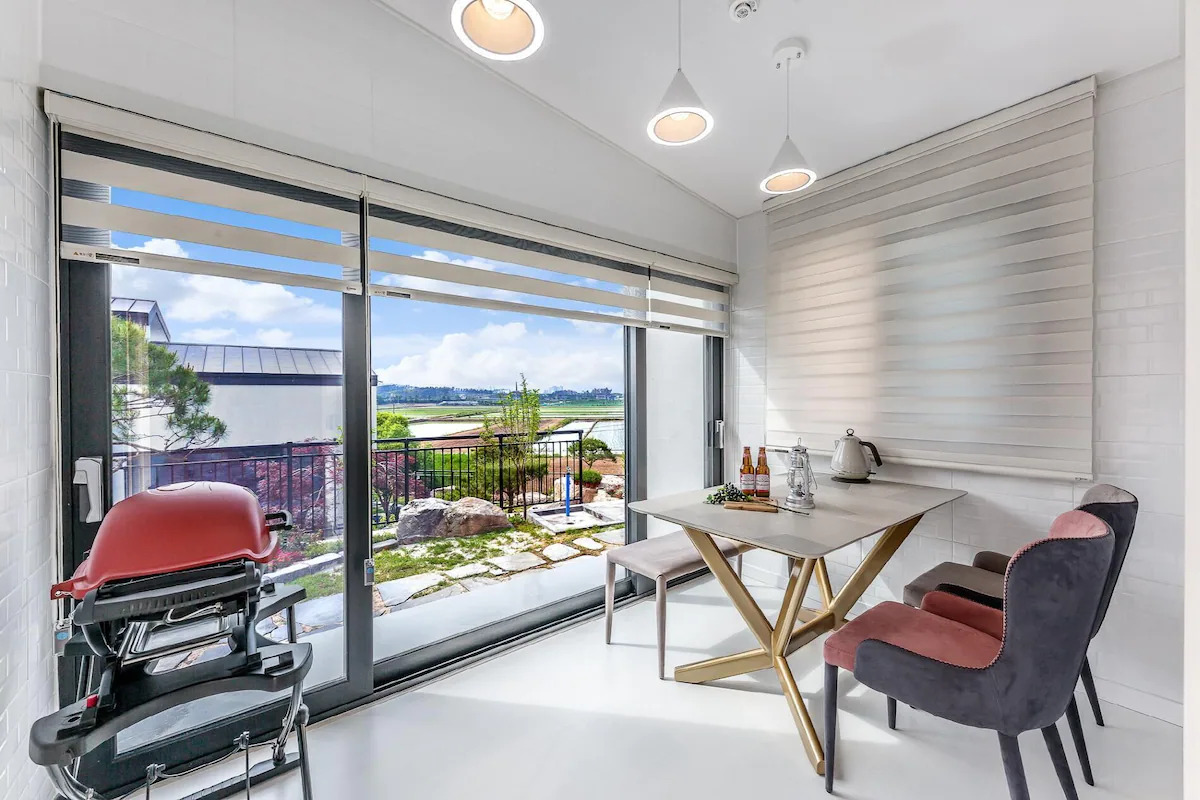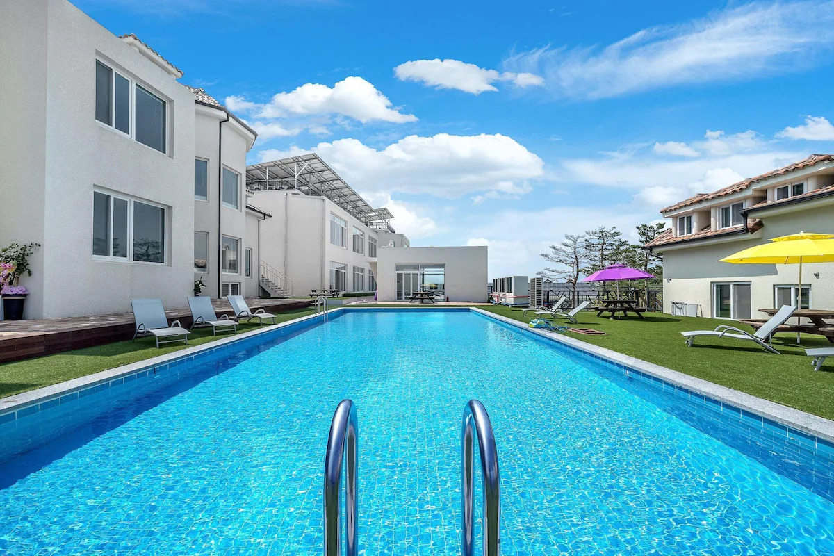 객실이 모던하면서 편안하게 꾸며져 있는 데다가 공간이 넓은 편이라 가족 단위의 투숙객들이 와서 편하게 묵기 좋은 펜션이에요. 야외 수영장도 보유하고 있어 아이들과 시원한 물놀이를 즐기기에도 좋습니다. 체크인은 오후 3시부터 6시까지, 체크아웃은 오전 11시까지 하고 있습니다.
