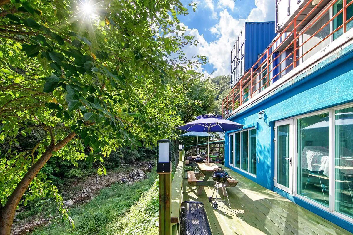 프런트 데스크가 없어 밤에 도착 예정이라면 사전 연락을 꼭 해두어야 해요. 지정된 인원보다 추가 인원이 투숙하게 된다면 인당 1만 원의 요금을 추가하면 됩니다. 사전 예약을 통해 야외에서 바비큐를 즐길 수 있고, 서핑 보드 렌털이나 캠프 파이어 예약도 가능해 굳이 계곡이 아니더라도 즐길 거리가 많은 숙소입니다.