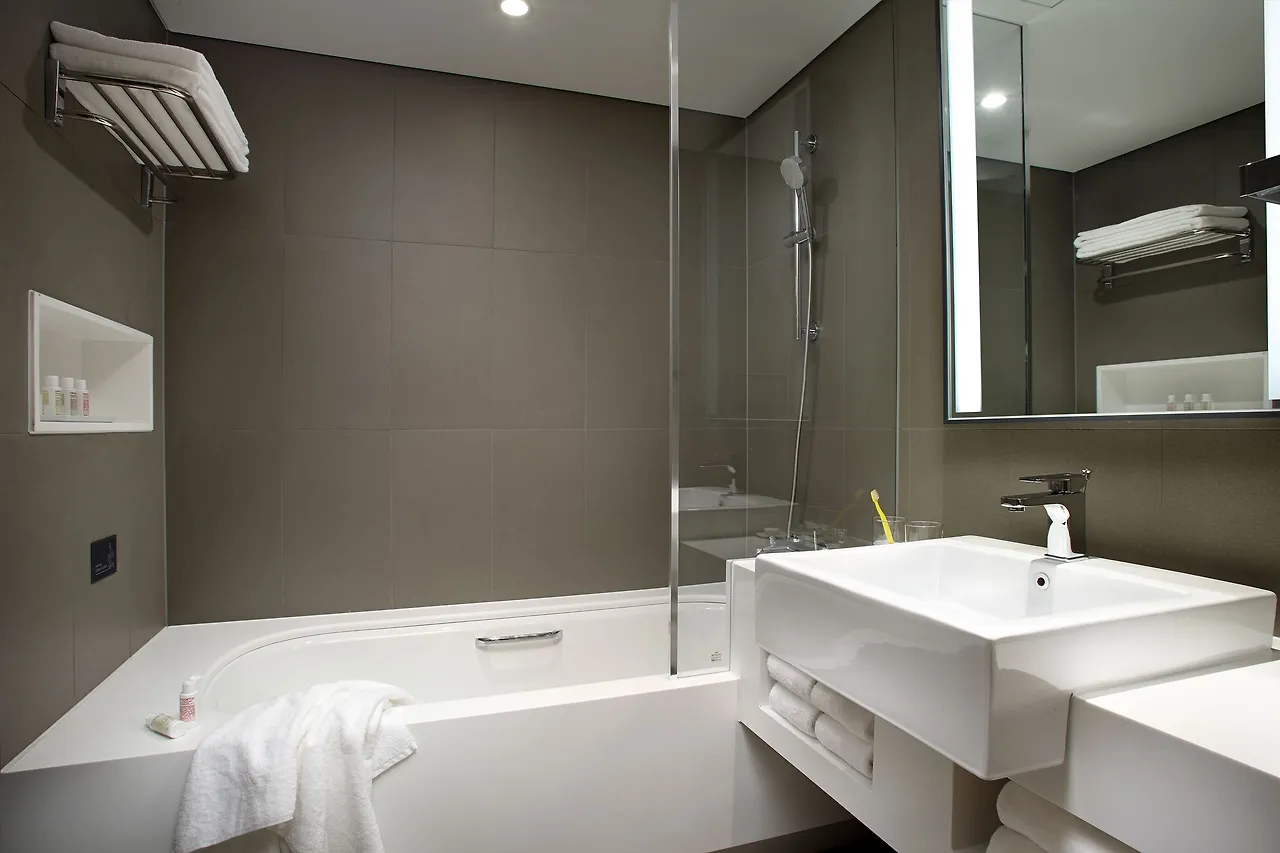 “객실이 넓고 아주 쾌적했습니다. 대로변에있어서 시끄러울까봐 걱정했는데 매우 조용했습니다. 특히 욕조 옆에 창이 있어서 밖에 보면서 물멍하고 있기 좋았습니다. 직원분들도 친절하시고 너무너무 만족스러웠습니다. 다음에 또 이용할게요 :)”