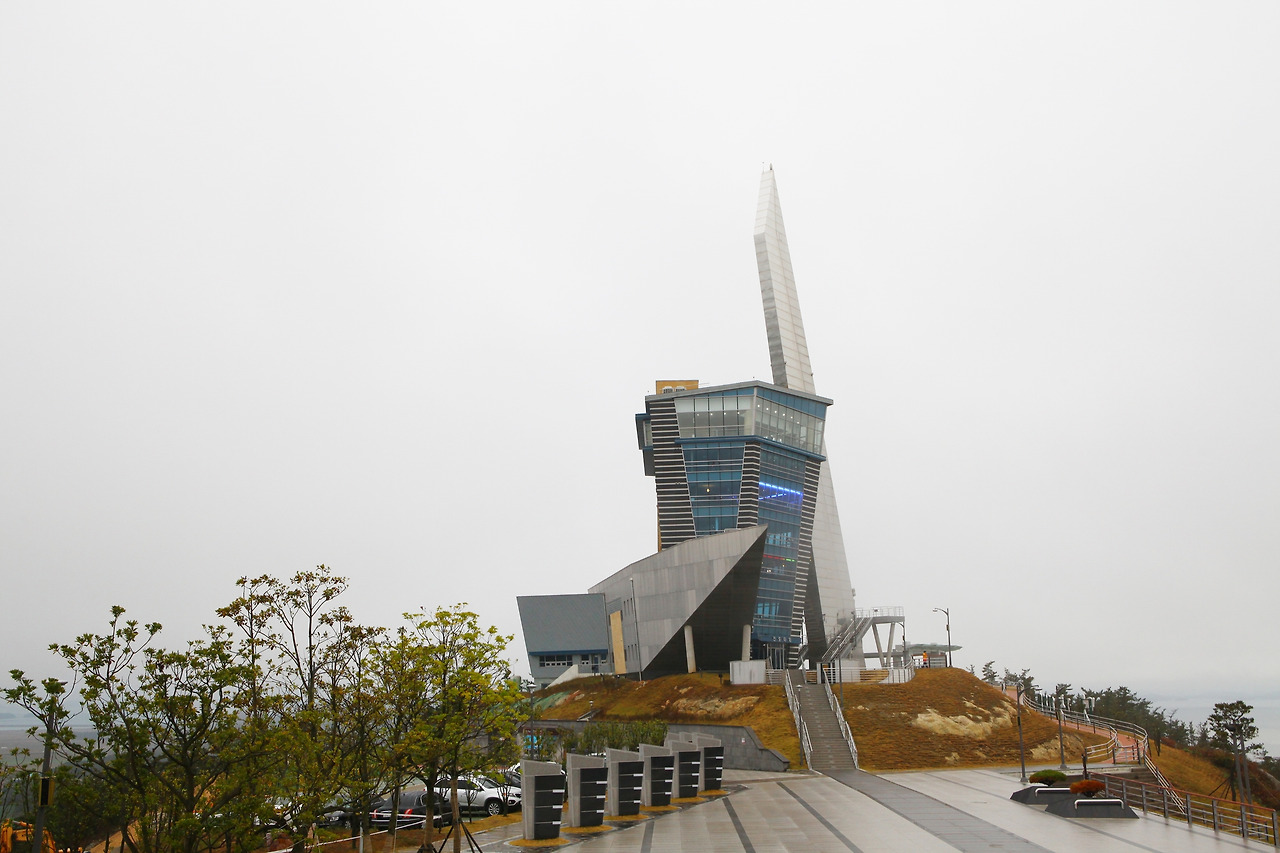 진도 대교를 건너 오르막길을 오르다 보면 진도 타워가 모습을 드러냅니다. 진도 타워는 명량대첩 당시, 판옥선을 모티프로 만들어졌다는 말이 있을 정도로 배의 모습을 닮았어요. 광장에는 이순신 장군과 같은 조형물이 있고, 그 뒤에는 바다를 바라볼 수 있는 다리가 있답니다.