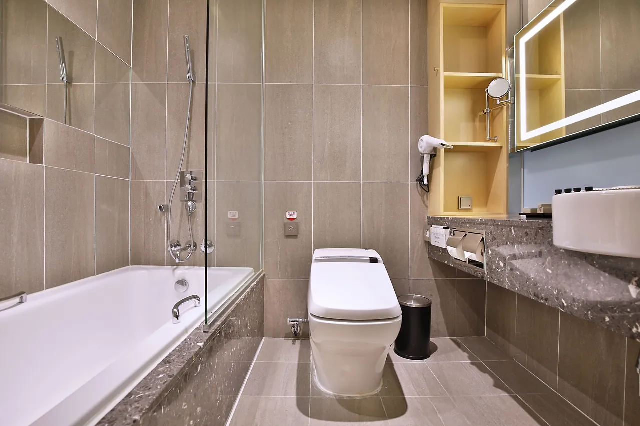 전 객실 모두 욕조가 비치되어 있어서 반신욕을 좋아하는 사람들이 피로를 풀기에 좋습니다. 또한 객실 내의 스마트 티비를 통해 넷플릭스는 물론 웨이브, 티빙 등 다양한 콘텐츠를 즐기는 것도 가능해요. 객실에서 다리미와 다리미판을 요청할 수도 있어요.