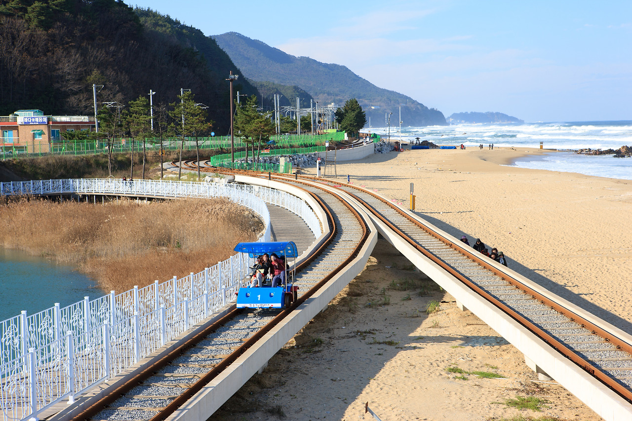시원한 바닷바람을 느끼면서 바다를 한눈에 담을 수 있는 정동진 레일바이크는 눈부신 청정바다를 즐기기에 그만입니다. 2인승 레일바이크와 4인승 레일바이크 중 선택이 가능합니다. 정동진역부터 출발해서 모래시계 공원까지 가는 노선이며 반대 노선으로 탑승할 수도 있어요.