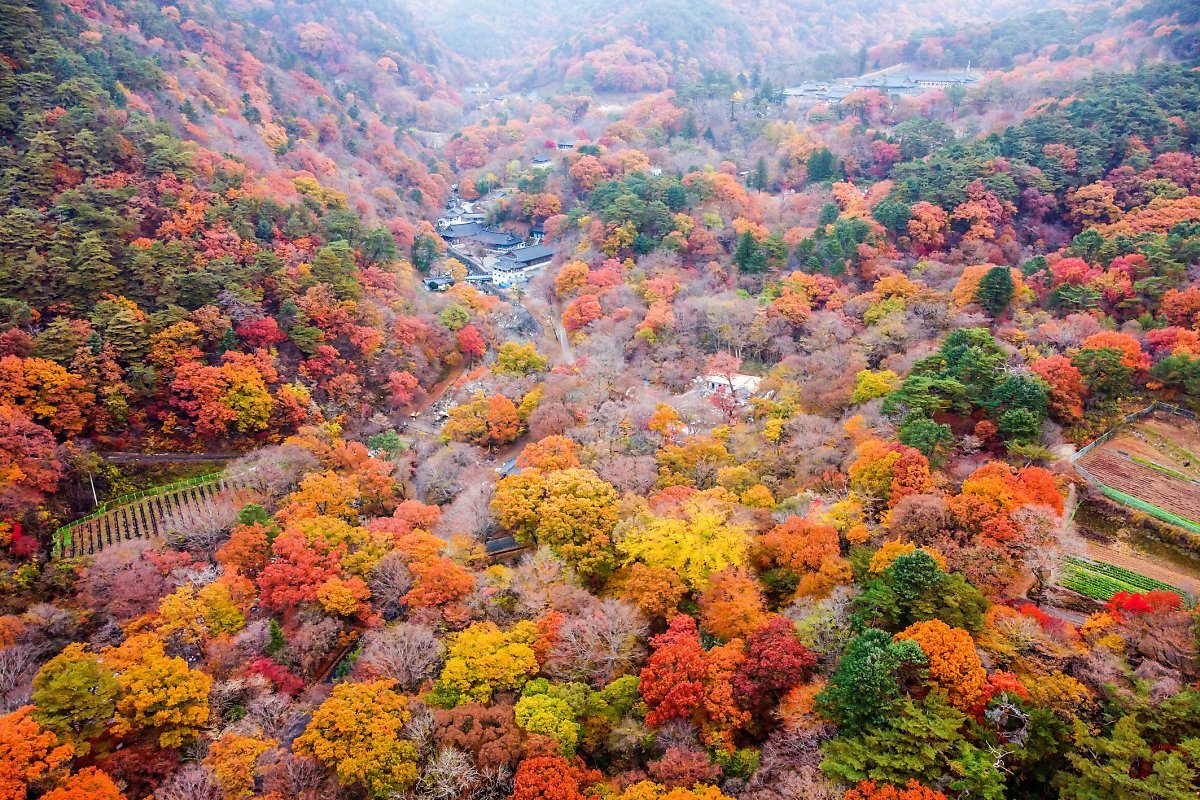 충청북도에 있는 속리산의 단풍 절정 시기는 10월 말쯤으로 예상되는데요. 경치가 너무 아름다워서 한국 8경 중 한 곳으로 꼽히는 곳입니다. 대사찰 중 하나인 법주사를 중심으로 천황봉과 입선대, 문장대, 경업대 등 1,000m가 넘는 봉우리로 둘러싸여 있어 특별한 단풍을 볼 수 있어요.