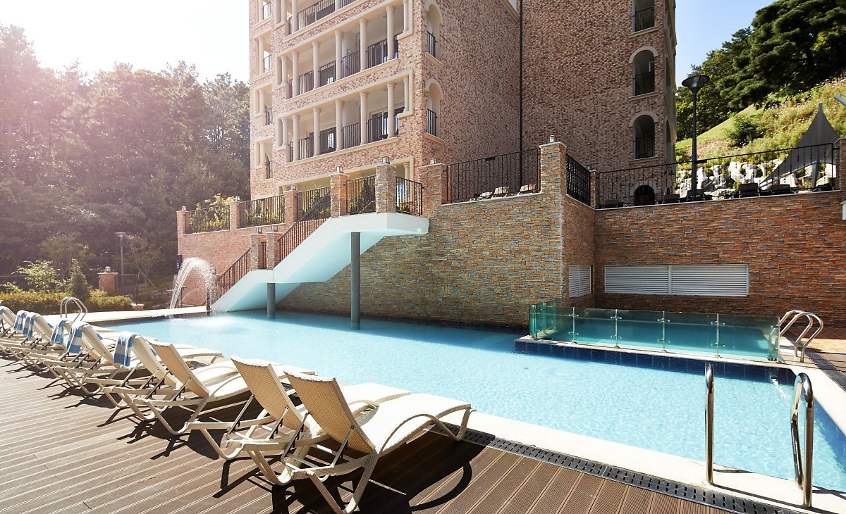 호텔 더 숨 포레스트는 에버랜드와 차로 5분 거리에 있는 숙소로 펜션을 빌린 듯한 리조트형 호텔입니다. 초록초록한 숲 속에 위치해 있어서 신나게 놀고온 후 편하게 쉴 수 있어요.