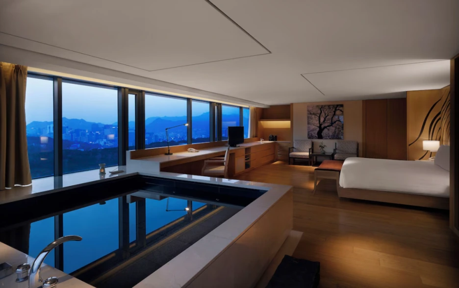반얀트리 클럽 앤 스파 서울은 남산 자락에 위치해 도심 한가운데에서도 자연과 가까운 분위기를 느낄 수 있는 호텔입니다. 번화한 지역과는 살짝 떨어져 있어 도착하는 순간부터 다른 공기를 느낄 수 있어요. 시내 접근성은 유지하면서도 조용한 휴식을 원하는 분들에게 잘 맞아요. 서울에서 흔치 않은 국내 노천탕 숙소라는 점에서 위치 자체가 큰 장점이라고 할 수 있습니다.