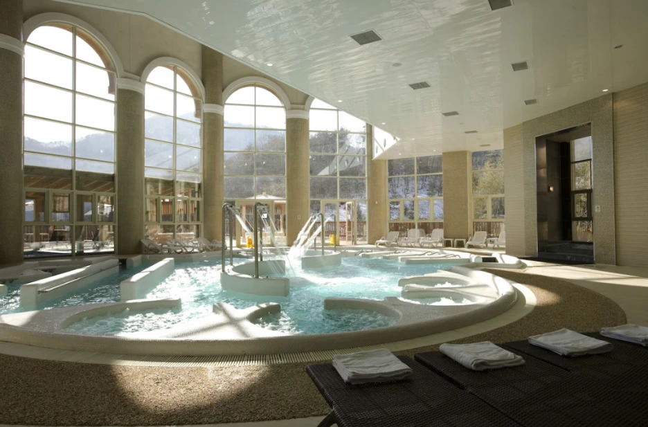 반얀트리의 핵심은 역시 스파와 웰니스 시설이죠. 대형 스파 공간과 수영장, 피트니스 시설이 체계적으로 구성되어 있습니다. 숙소 안에서 하루를 보내도 충분히 만족스러워요. 휴식 그 자체를 목적으로 한 국내 노천탕 숙소를 찾는다면 가장 확실한 선택지가 될 거예요.