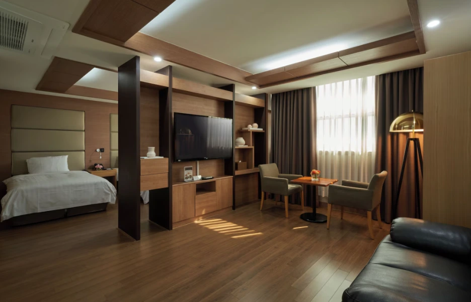 객실은 전반적으로 우드톤으로 따뜻하며 아늑한 분위기 입니다. 객실 내에 미니 테이블과 소파가 있어 근처 맛집에서 음식을 포장 후 숙소에서 편하게 식사하기에도 딱이랍니다. 합리적인 가격과 위치를 동시에 고려했을 때 경주 황리단길 숙소로 추천드리는 호텔입니다.