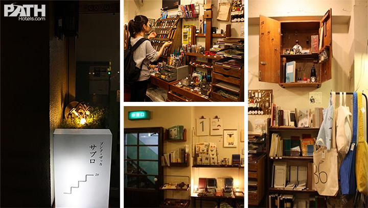 산책도 마쳤으니 슬슬 돌아갈까 하던 중, 토모코 상의 추천으로 재미있는 문구 용품점에 들르기로 한다. 아는 사람은 알지만, 모르는 사람은 지나쳐버릴 것만 같은 문 앞 간판. 좁고 밋밋한 계단을 올라가면 들어갈 수 있는 미지의 보물창고다. 문 앞에는 카메라 금지라는 스티커가 부착되어 있었지만, 다행히 양해를 구하고 사진에 담을 수 있었다.