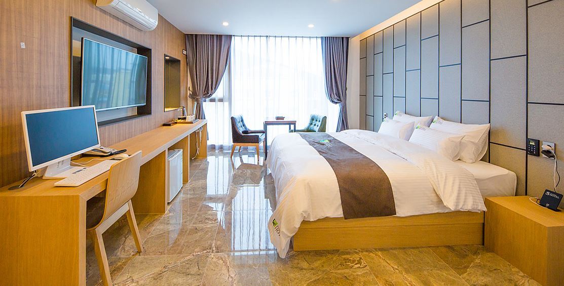 S 호텔 순천은 순천만 국가정원과 걸어서 5분 거리로 아주 가까운 곳에 위치하고 있습니다. 순천의 큰 호텔들은 대부분 외곽에 있어 시내 중심가에 관광지와 근거리의 숙소를 찾는 여행객들에게 호평을 받는 곳이죠. 비교적 최근에 지어진 곳이라 객실 내부가 다른 호텔들과 비교해 넓고 깨끗한 것이 이 곳의 가장 큰 장점인데요, 모던하고 차분한 인테리어와 2인부터 4인 최대 8인까지 묵을 수 있는 다양한 객실을 보유하고 있어 친구와 가족 등 동행자 수에 따라 자유롭게 객실을 선택할 수 있답니다.