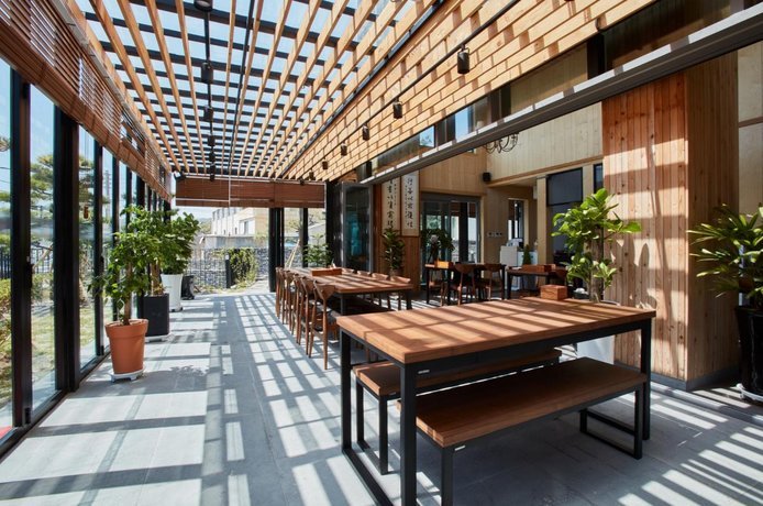 오전이나 낮 시간에 도착하면 나무를 주재료로 활용한 인테리어와 햇빛이 어우러지는 아름다운 순간을 포착할 수 있습니다. 독채를 예약하면 주방을 함께 쓸 수 있어 더욱 편리한데요. 주방이 없는 객실을 이용하게 된다면 1층의 다목적실에서 간단한 조리를 해결할 있으니 참고하시길 바랄게요. 무료로 제공하는 아침 식사도 놓치지 마시고요.