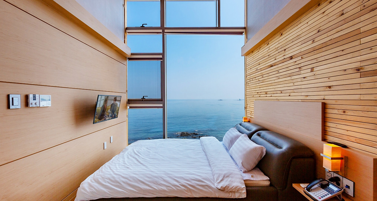 영일대 해수욕장 근처에 있는 이 호텔은 로비에서부터 화려한 느낌이 듭니다. 대리석을 주조로 한 인테리어와 갤러리처럼 비치해둔 그림 작품 때문에 감각적인 기분도 들고요. 모든 객실에서 오션뷰를 즐길 수 있기 때문에 조금 부지런히 일어나서 호미곶의 해가 뜨는 장면을 눈에 담는 것도 좋은 경험이 될 거예요.