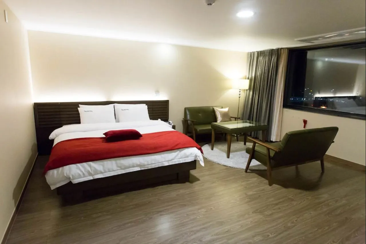 죽도 시장 근처에 있는 이 호텔은 숙박 시설이 모여있는 지역에 있지만 비교적 한적한 곳에 있어 여행을 하기에도 편리하고 쉬기에도 무리가 없습니다. 24시간 룸서비스와 경비 서비스, 프런트 데스크를 운영하고 있으며 작은 객실이지만 어매니티와 슬리퍼, 무료 티 등 곳곳에 세심한 준비가 녹아들어 있는 호텔입니다.